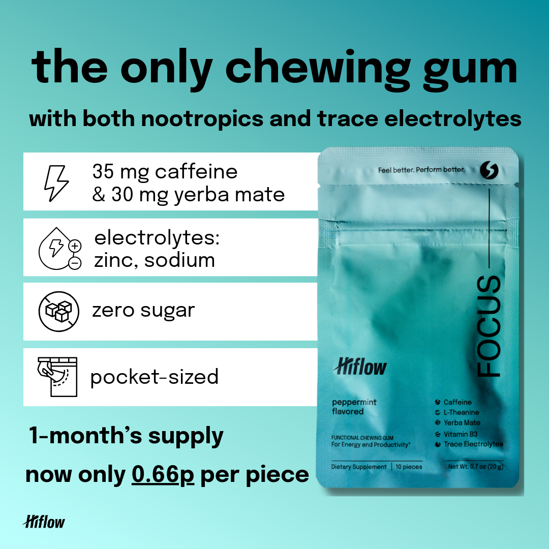Smart, sugar-free gums with science-backed nootropics + trace electrolytes. Deliciously crafted to help you lock in, stay sharp, and conquer your day.
